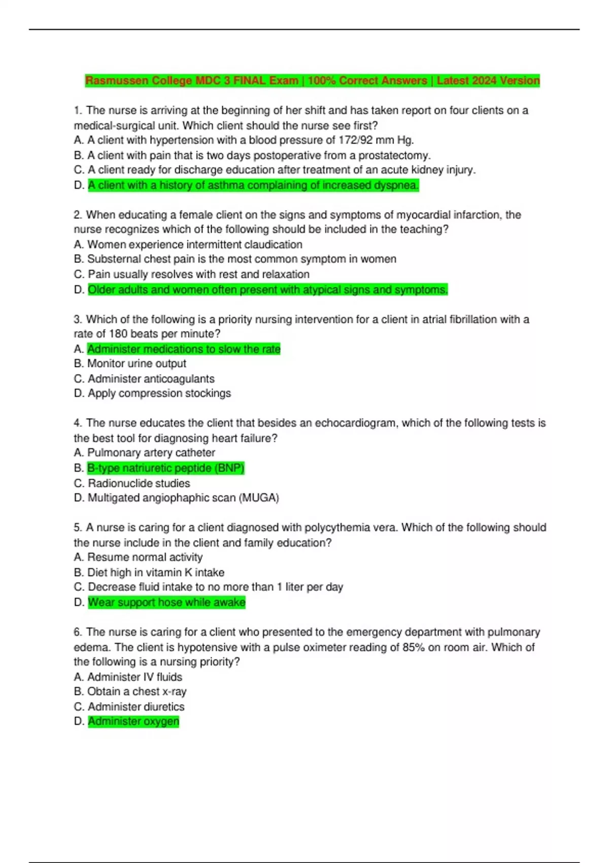 NUR 2502 / NUR2502 Final Exam Multidimensional Care III / MDC 3 - Rasmussen