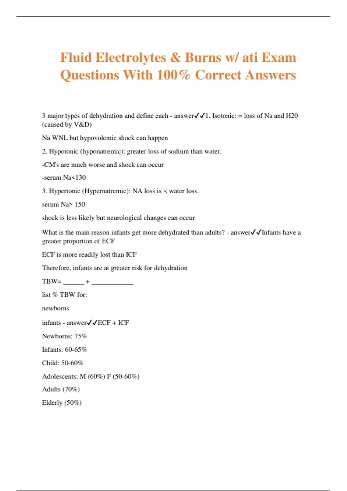 Fluid Electrolytes & Burns w/ ati Exam Questions With 100% Correct Answers