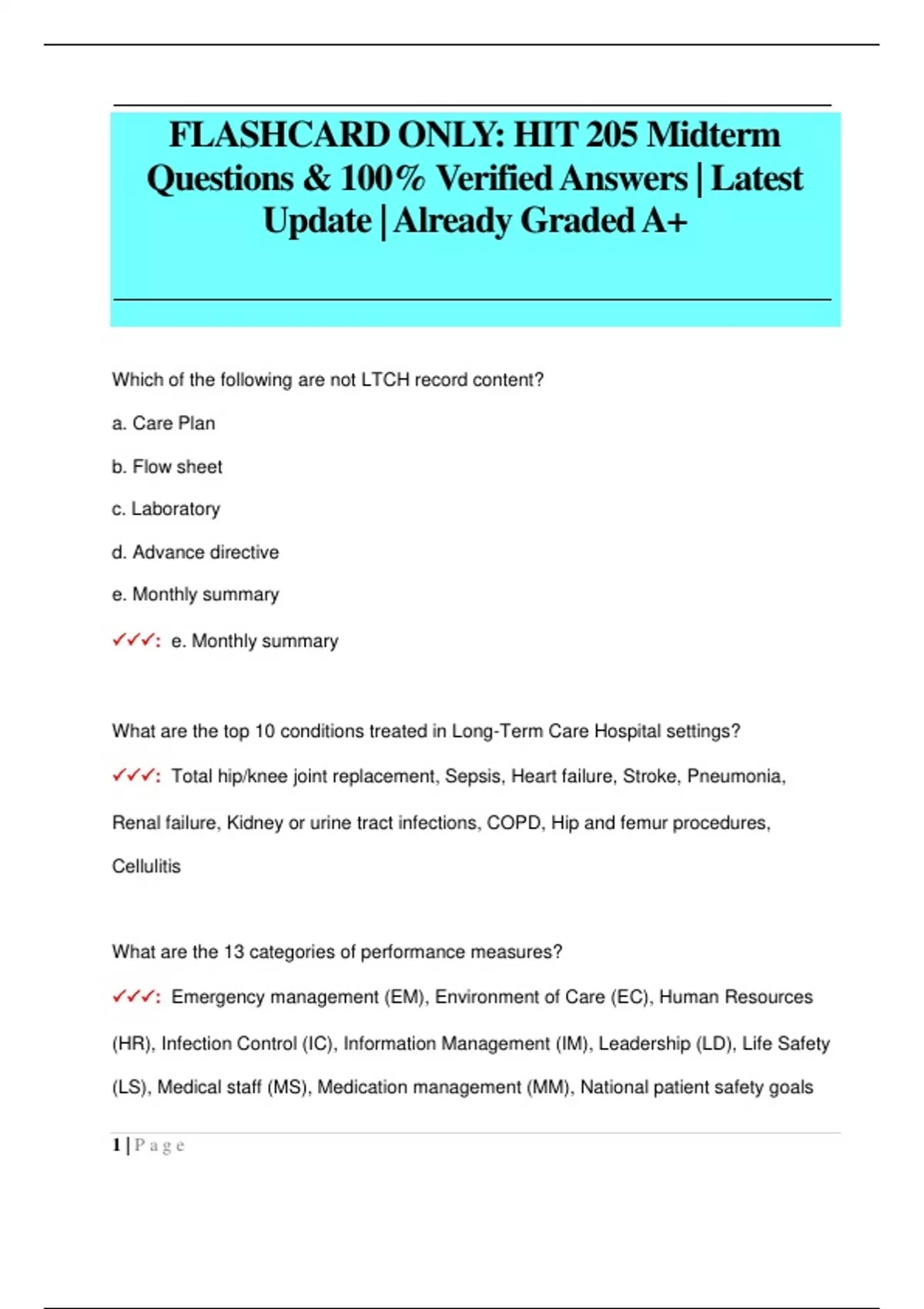 FLASHCARD ONLY: HIT 205 Midterm Questions & 100% Verified Answers | Latest Update | Already Graded A+