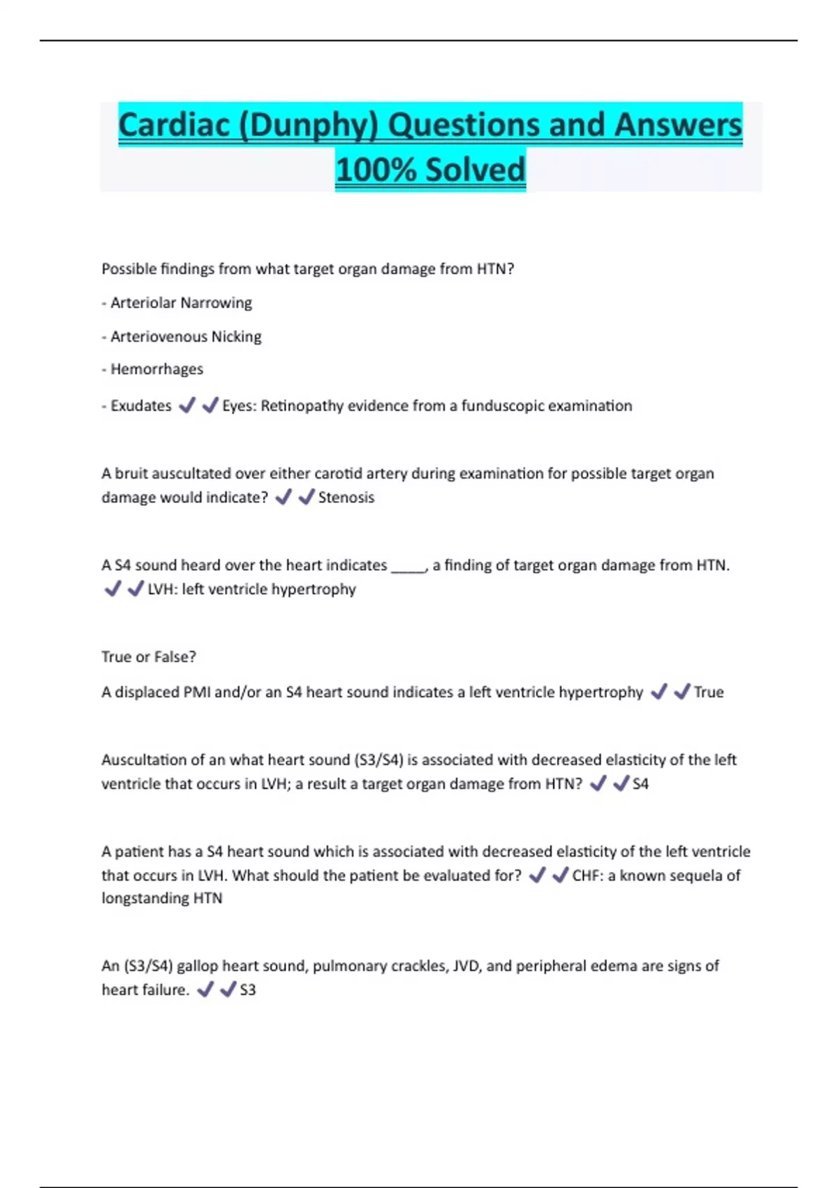 Dunphy cardiology Test Questions and Answers 100% Solved
