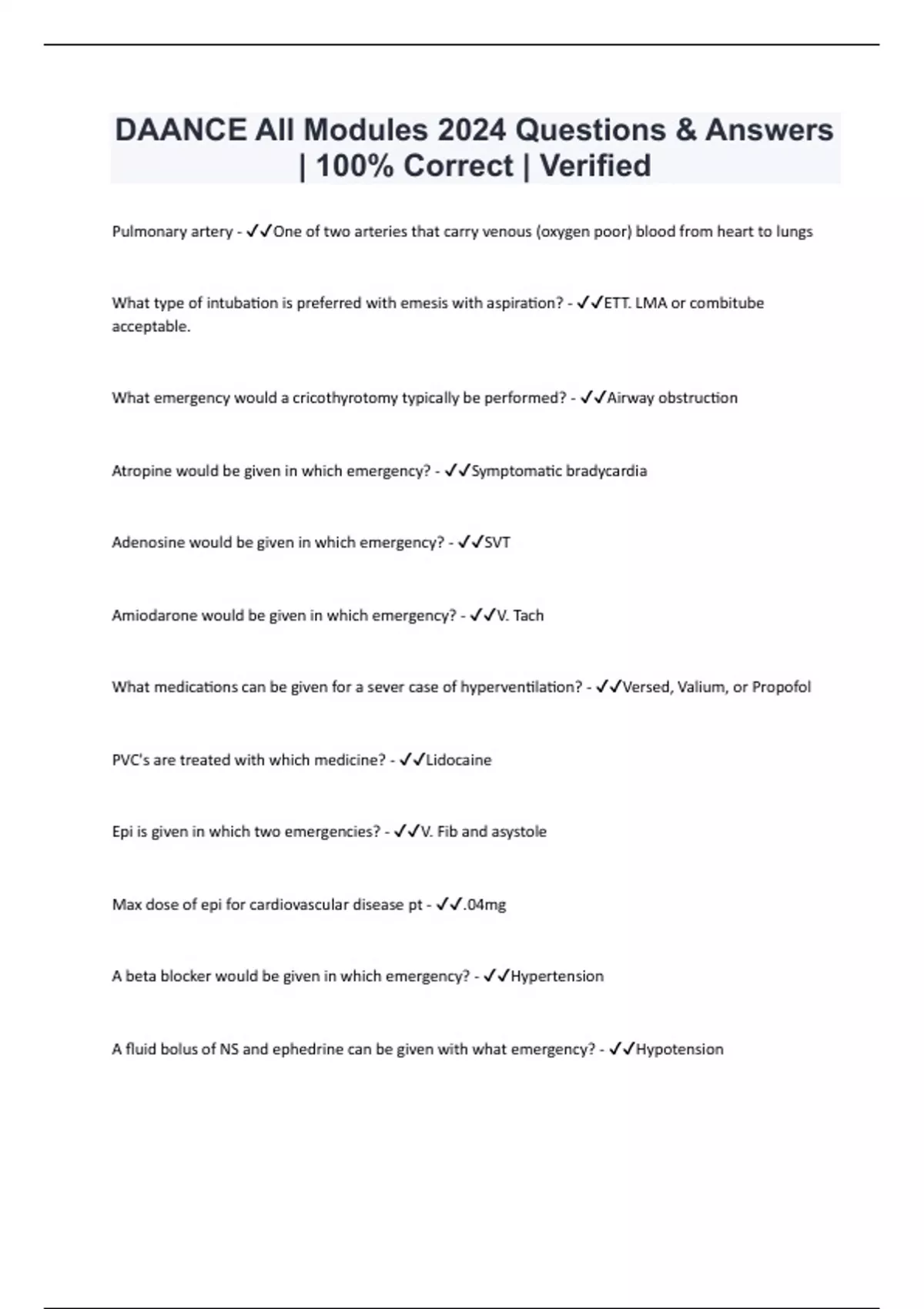 DAANCE 2024 Questions & Answers | 100% Correct | Verified