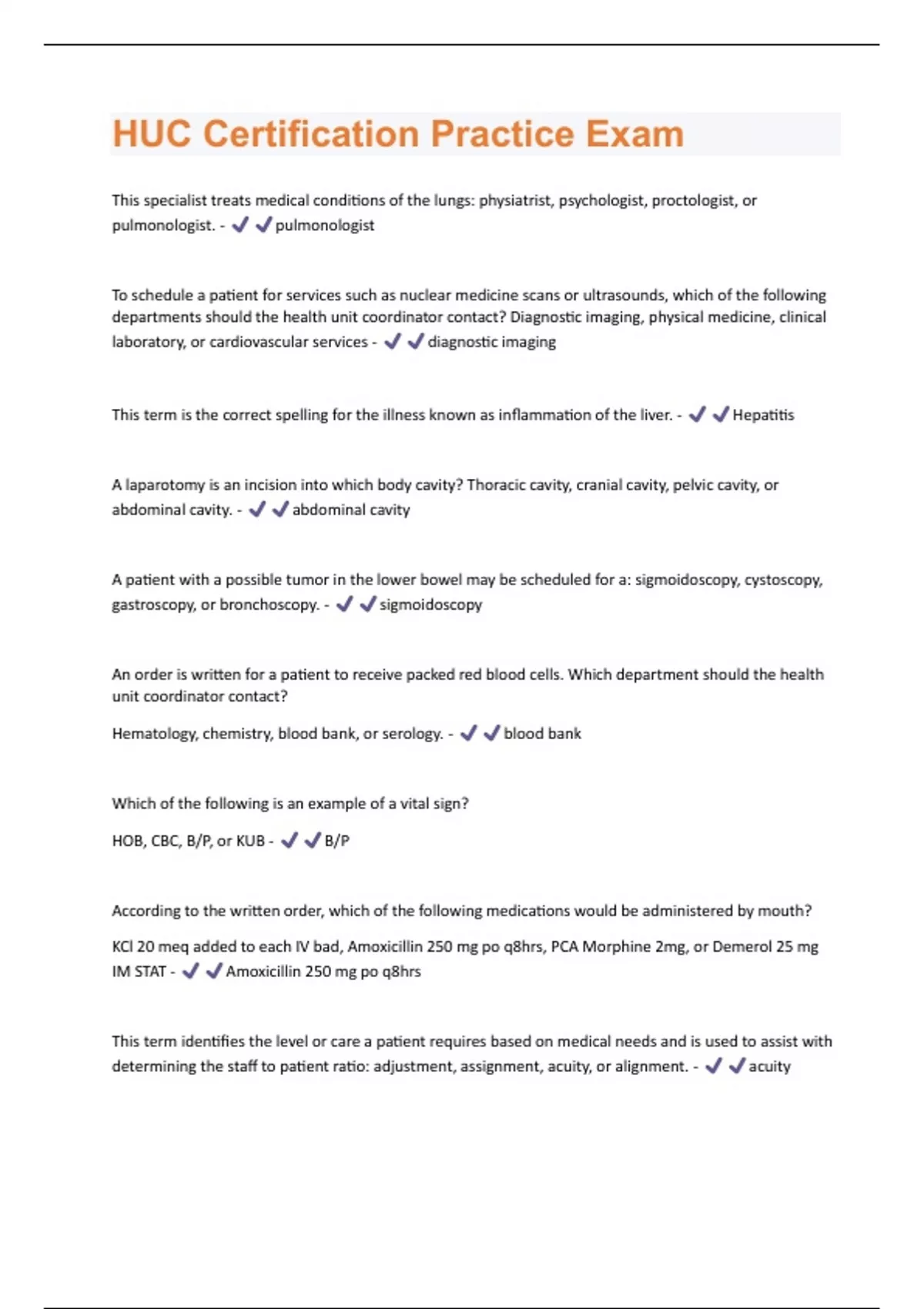 HUC Ch 8 Quiz Questions And Answers With Verified Tests 100% Correct Answers