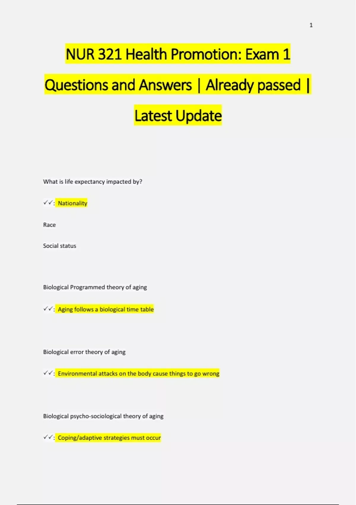 NUR 321 Questions and Answers Pack| Already passed | Latest Update