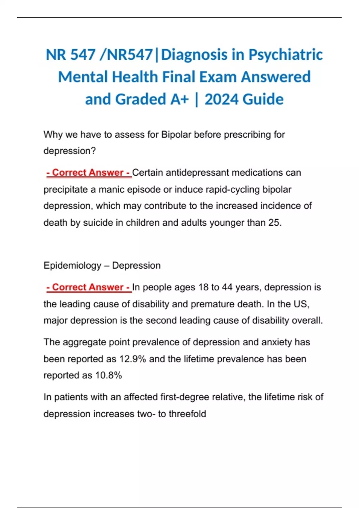 NR546 / NR 546 Week 8 Psychopharmacology for the Psychiatric | Study Guide 2024 Guide