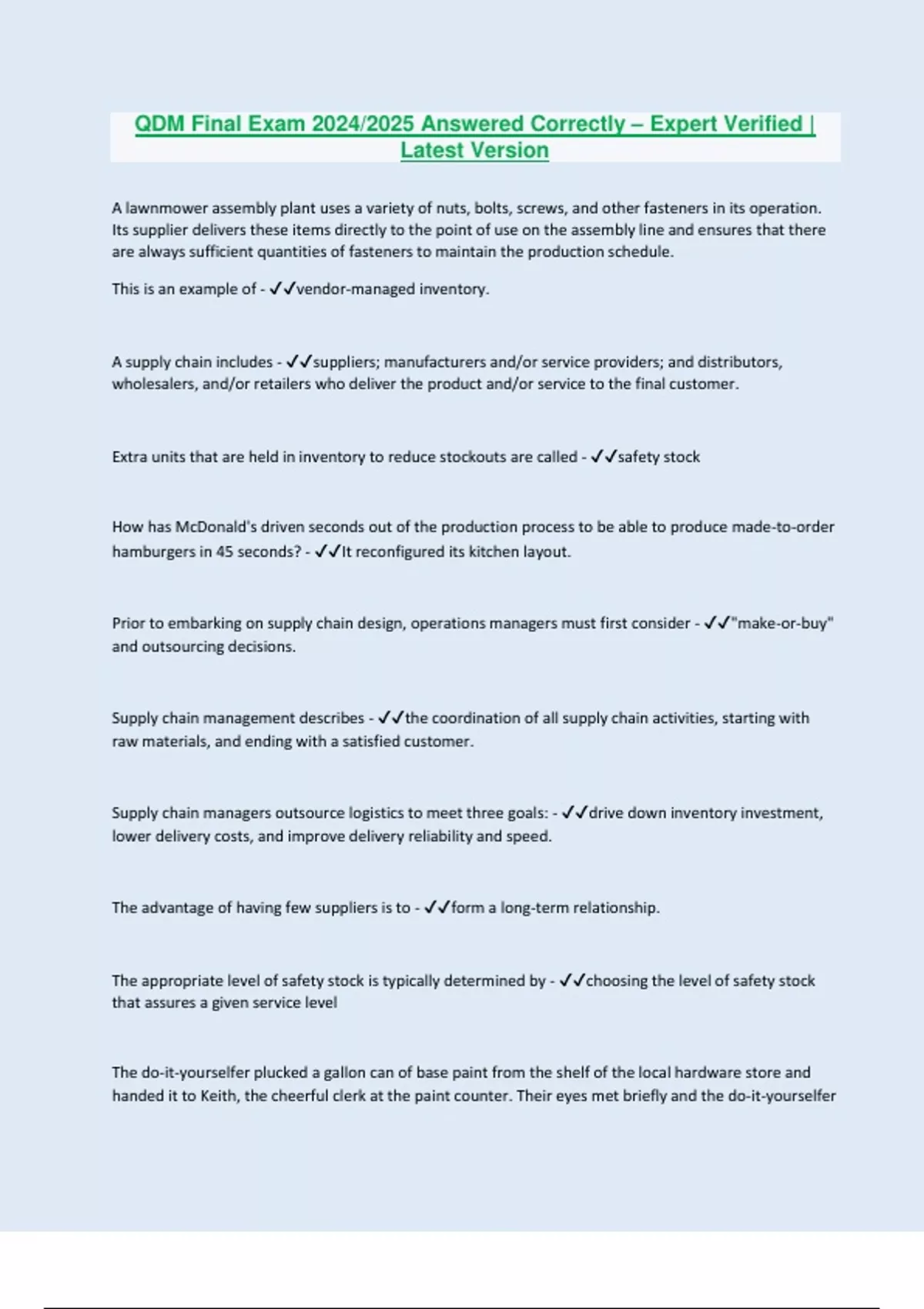 QDM Final Exam 2024/2025 Answered Correctly – Expert Verified | Latest Version