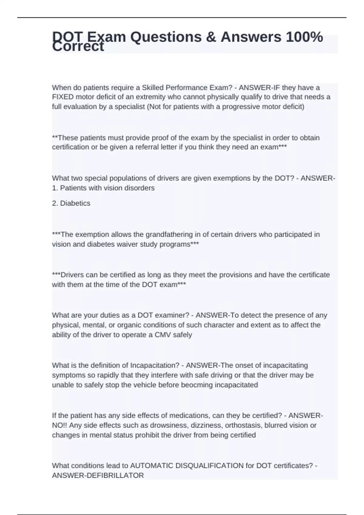 DOT Exam Questions & Answers 100% Correct