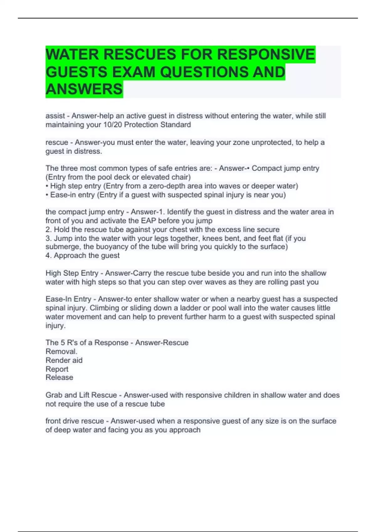 EMERGENCY ACTION PLAN EXAM QUESTIONS AND ANSWERS 2 Exam (elaborations) Ellis Lifeguard Training Exam Questions and Answers 3 Exam (elaborations) ELLIS AND ASSOCIATES LIFEGUARD TEST QUESTIONS AND ANSWERS 4 Exam (elaborations) ELLIS AND ASSOCIATES ILTP STUDY GUIDE EXAM QUESTIONS AND ANSWERS 5 Exam (elaborations) ELLIS & ASSOCIATES LIFEGUARD TRAIN