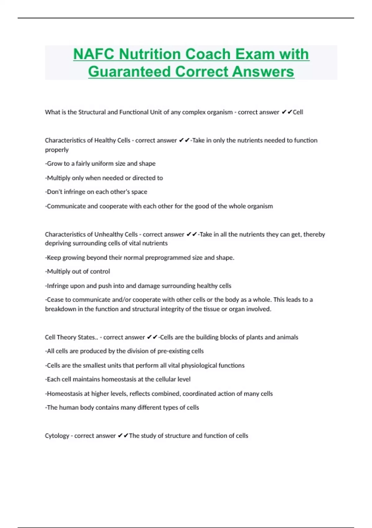 NAFC Personal Training Exam with Guaranteed Accurate Answers NAFC Nutrition Certification Exam 2024 with Guaranteed Accurate Answers NAFC Nutrition Certification Exam with Guaranteed Correct Answers NAFC Group Fitness Certification Exam with Guaranteed Correct Answers NAFC lifestyle consultant manual-2 Questions with Guaranteed Accurate Answers