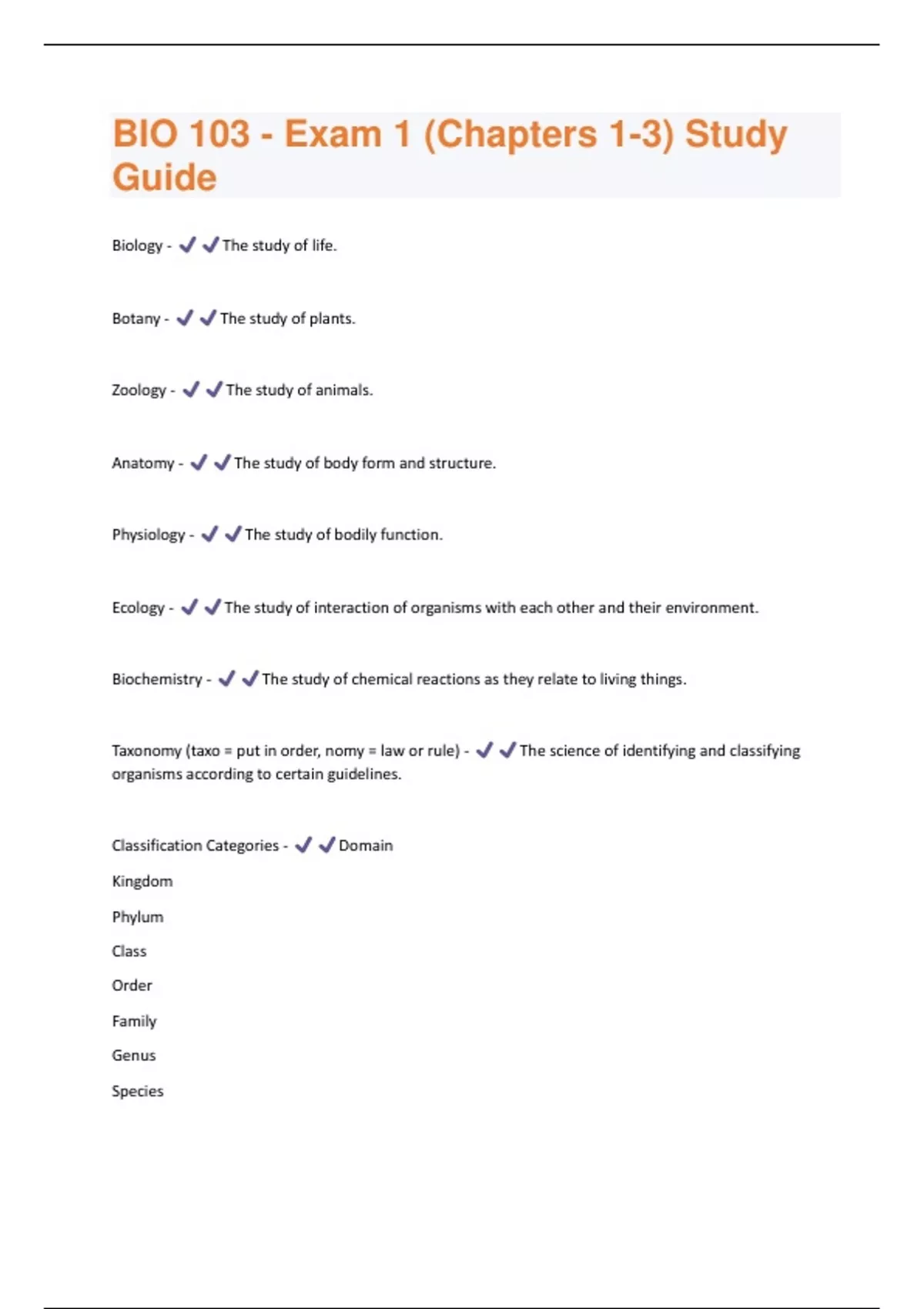 BIO 103 - Exam 1 (Chapters 1-3) Study Guide latest questions and answers all are correct graded A+