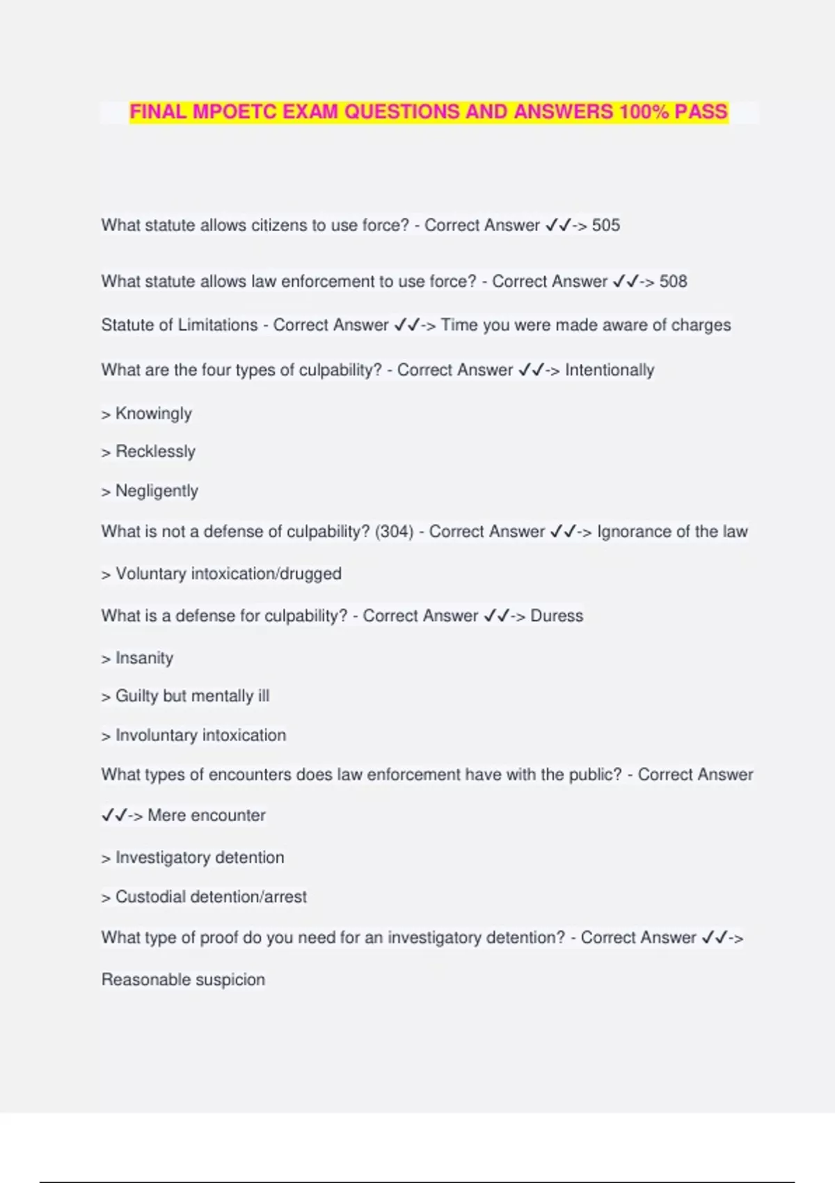 MPOETC Bundled Exams Questions and Answers 100% Verified and Updated | Graded A+