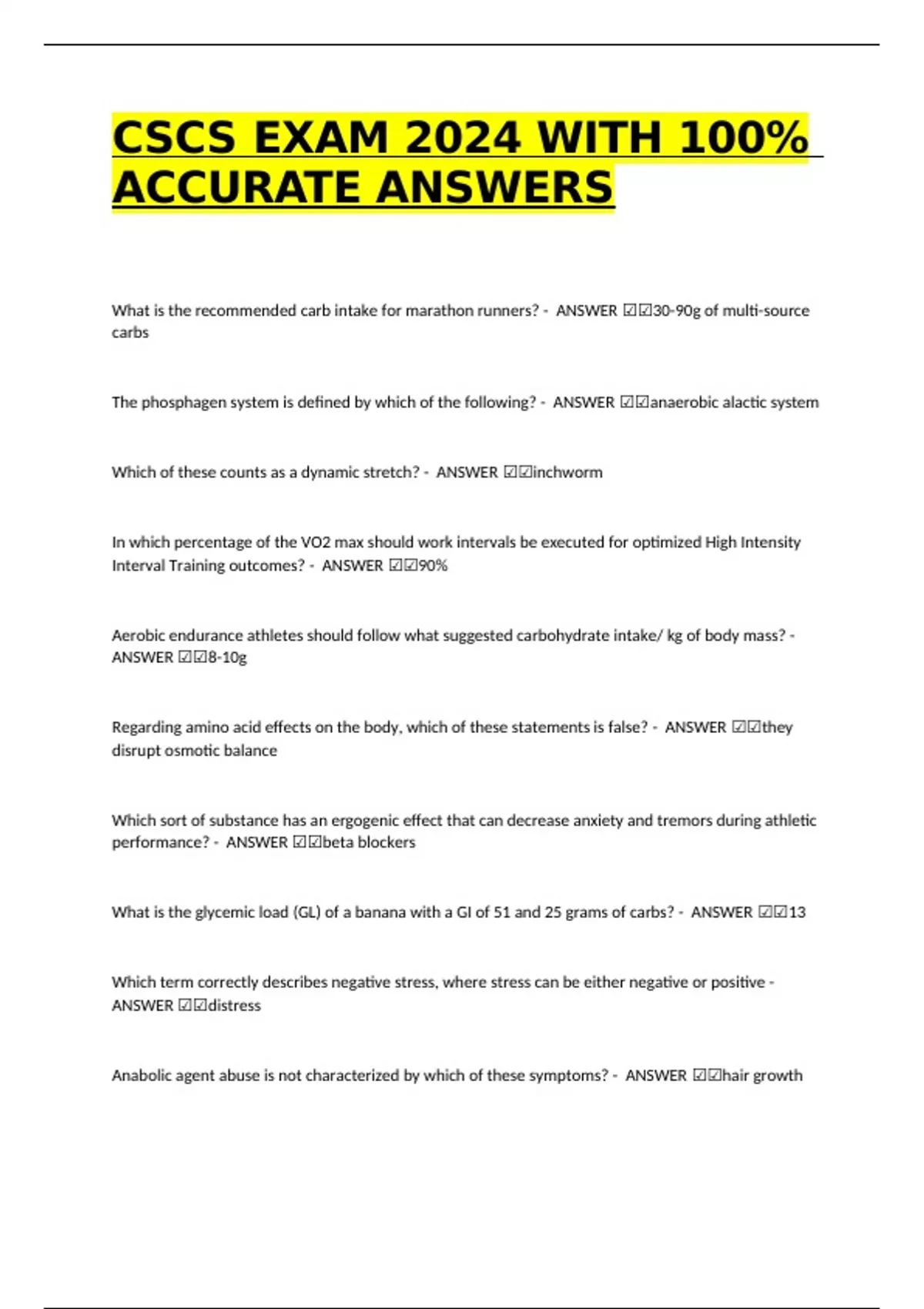 CSCS EXAM 2024 WITH 100% ACCURATE SOLUTIONS CSCS EXAM 2024 WITH 100% ACCURATE SOLUTIONS