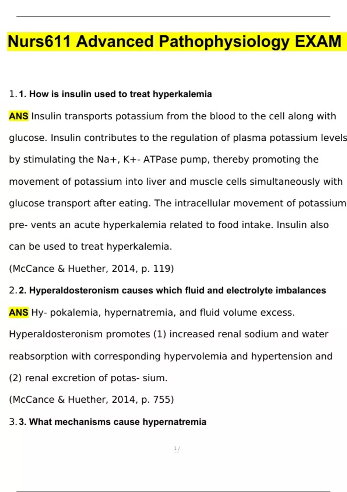 Maryville Advanced Pathophysiology NURS 611 Exam 1- 5 BUNDLED NURS 611 Final & Midterm Exams - McCance and Practice Quizes Advanced Pathophysiology (2024/2025) Newest Questions and Answers (Verified Answers)