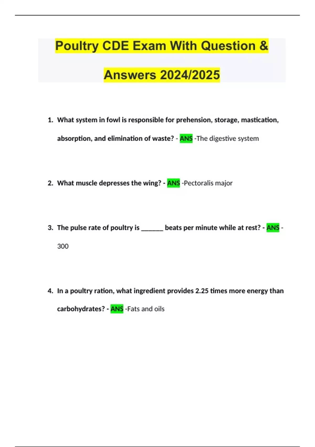 Poultry CDE Exams With Question & Answers PACKAGE DEAL