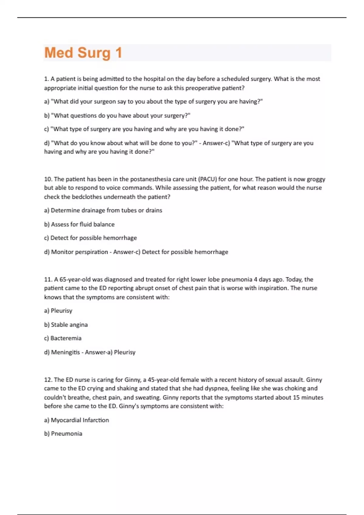 Med/Surg Exam 1 Questions And Answers Graded A+