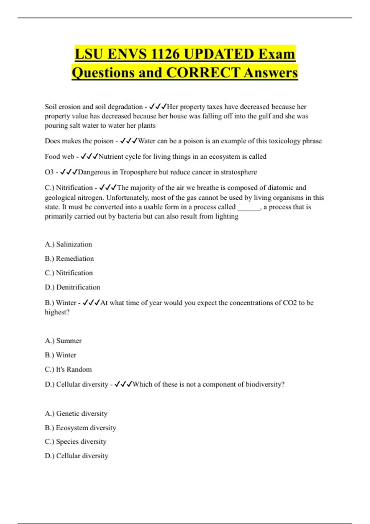 Lsu ENVS 1126 Bundled Exam Questions Package with Correct Answers