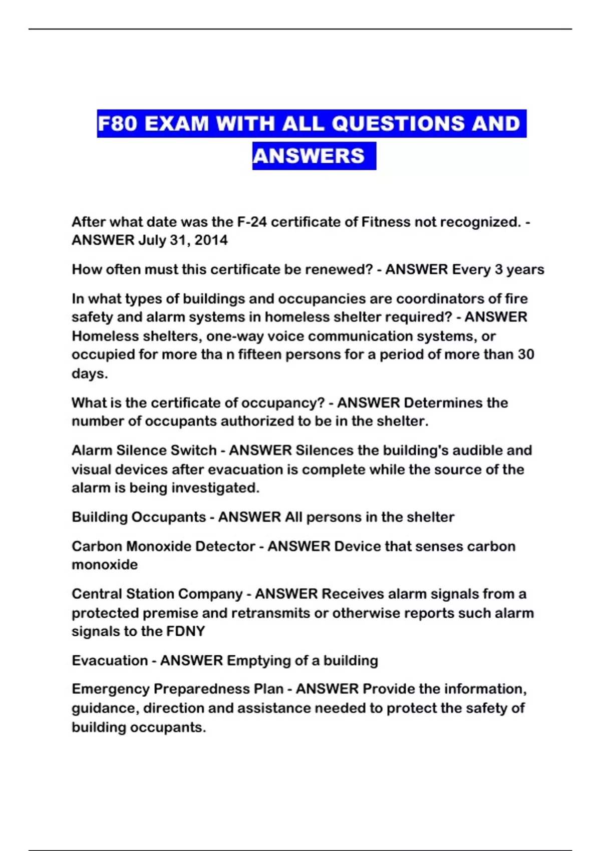 F80 EXAM WITH ALL QUESTIONS AND ANSWERS