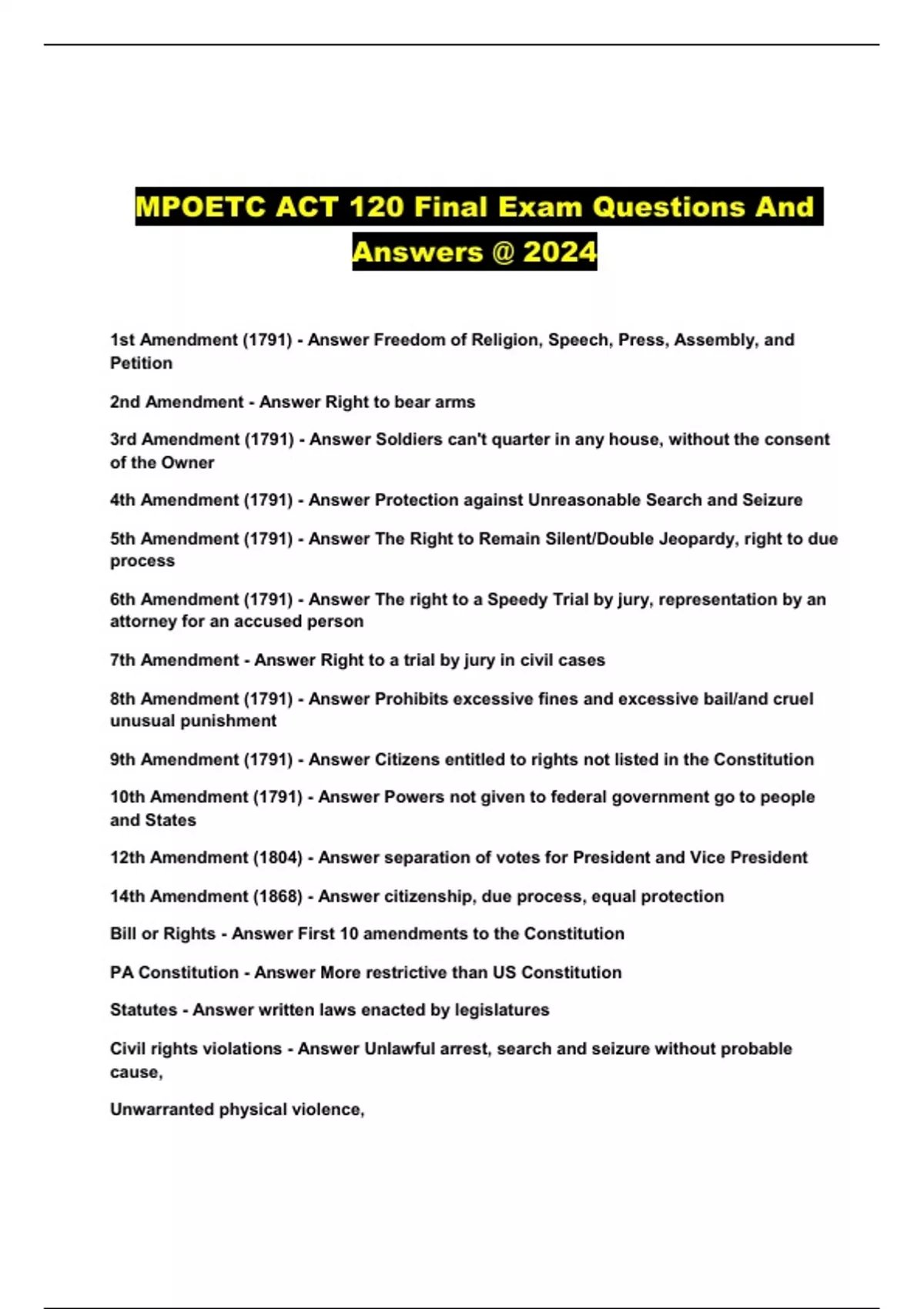 MPOETC ACT 120 CERTIFICATION EXAM REVIEW WITH QUESTIONS AND ANSWERS