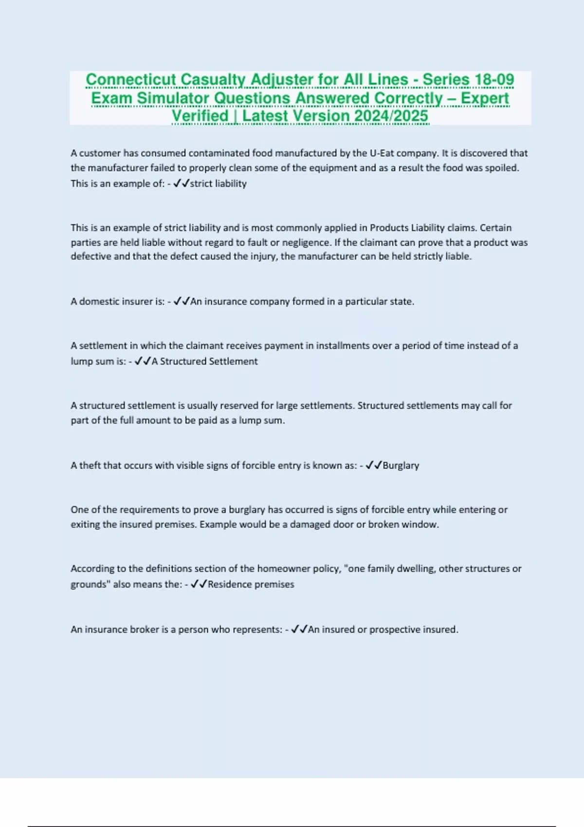 Connecticut Casualty Adjuster for All Lines - Series 18-09 Exam Simulator Questions Answered Correctly – Expert Verified | Latest Version 2024/2025