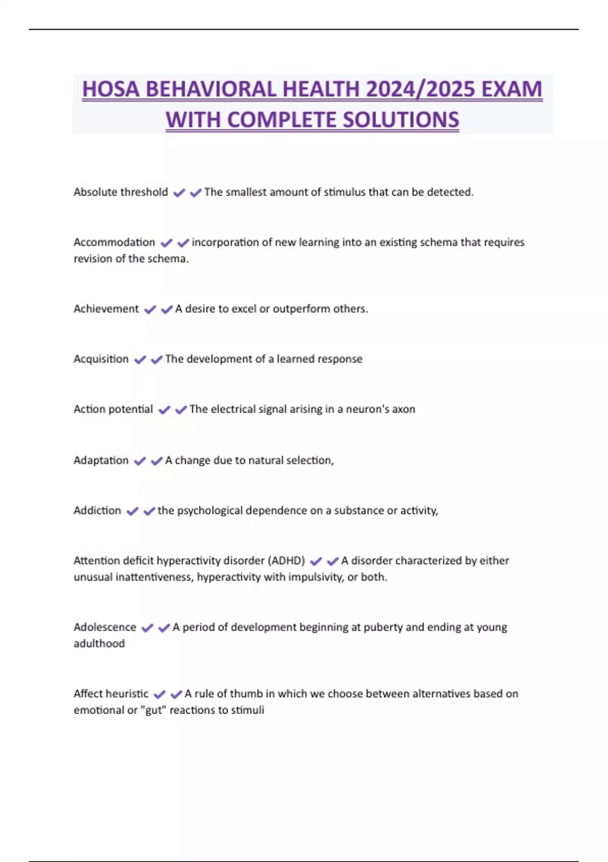 COMPLETE;;;HOSA BEHAVIORAL HEALTH BUNDLED EXAMS WITH COMPLETE SOLUTIONS