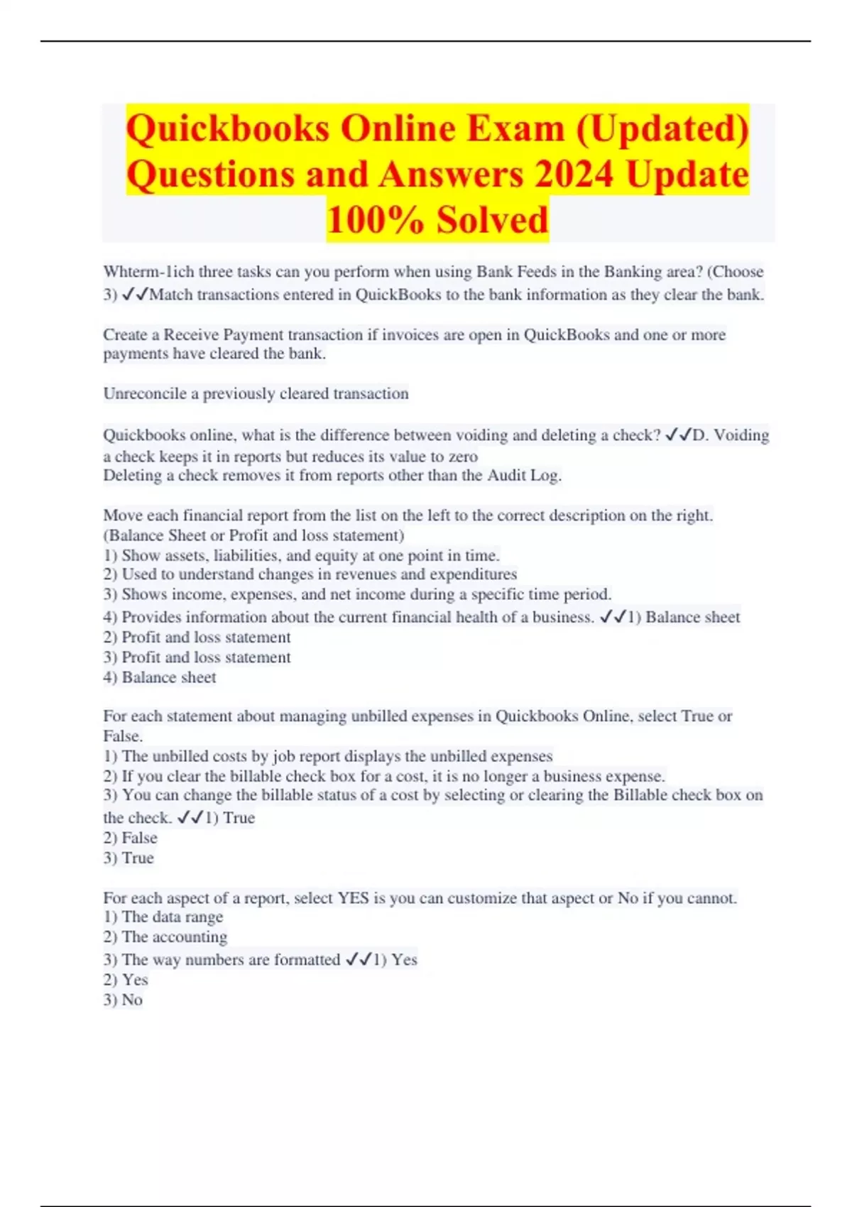 QuickBooks Exam with Verified Solutions
