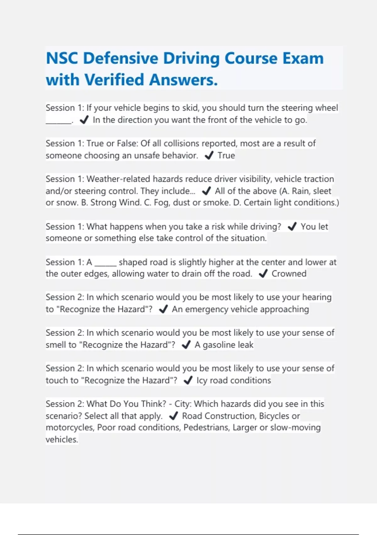 National Safety Council (NSC) Defensive Driving exams PACKAGE DEAL| BUNDLE contains the latest exams, practice questions, sample quiz, knowledge check and updated study guide - Everything you need to pass defensive driving is here!