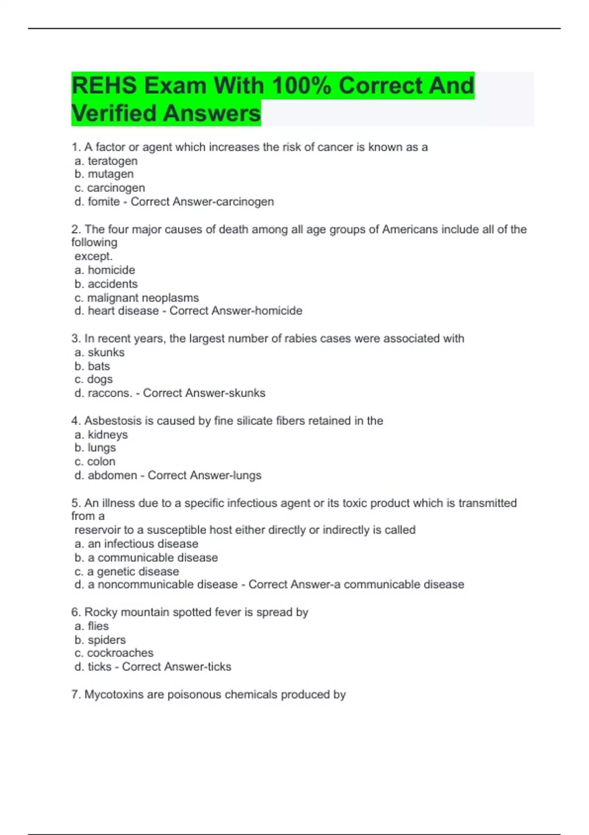 REHS Exam With 100% Correct And Verified Answers REHS Exam Pools With 100% Correct And Verified Answers RS/ REHS Exam Practice Questions With 100% Correct And Verified Answers Rehs Exam 1 With 100% Correct And Verified Answers REHS Exam Wastewater With 100% Correct And Verified Answers