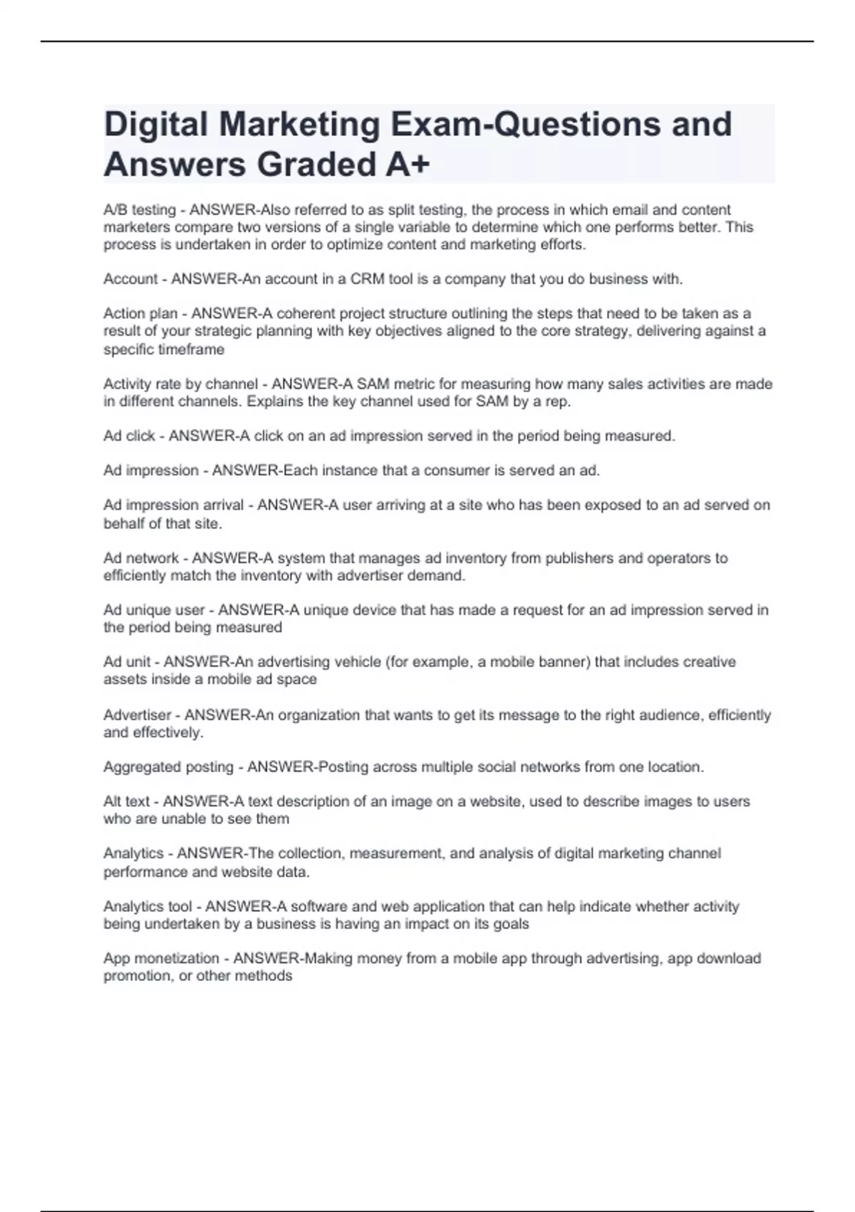 Digital Marketing Exam 2-Questions and Answers Graded A+