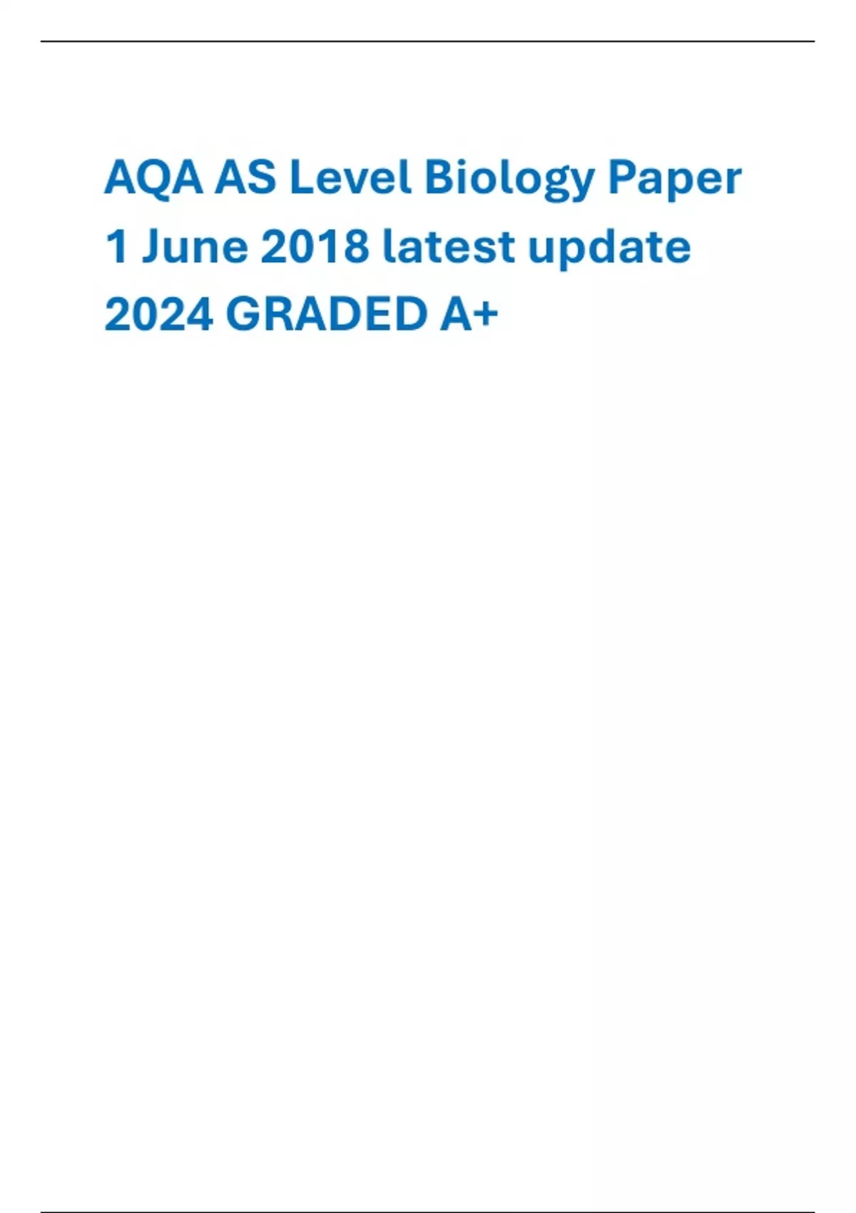 Exam (elaborations) AQA AS BIOLOGY 7401 EXAM WITH QUESTIONS AND CORRECT VERIFIED ANSWERS LATEST UPDATE.// Biology AS AQA What are the advantages of multi-cellular organisms? - CORRECT ANSW--able to move -able to hunt(likely to he in top 2 Exam (elaborations) AQA AS BIOLOGY PAPER 1 JUNE 2023 MARK SCHEME (7401/1)// AQA Economics A-Level Games and ac