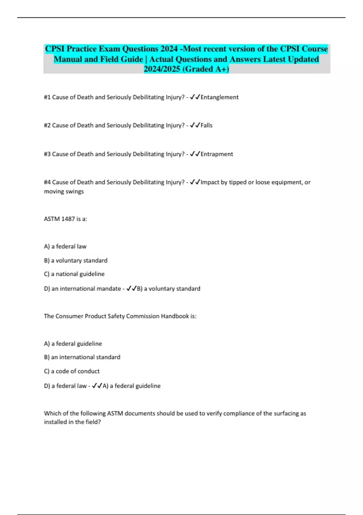 CPSI Practice Exam Questions 2024 -Most recent version of the CPSI Course Manual and Field Guide | Actual Questions and Answers Latest Updated 2024/2025 (Graded A+)