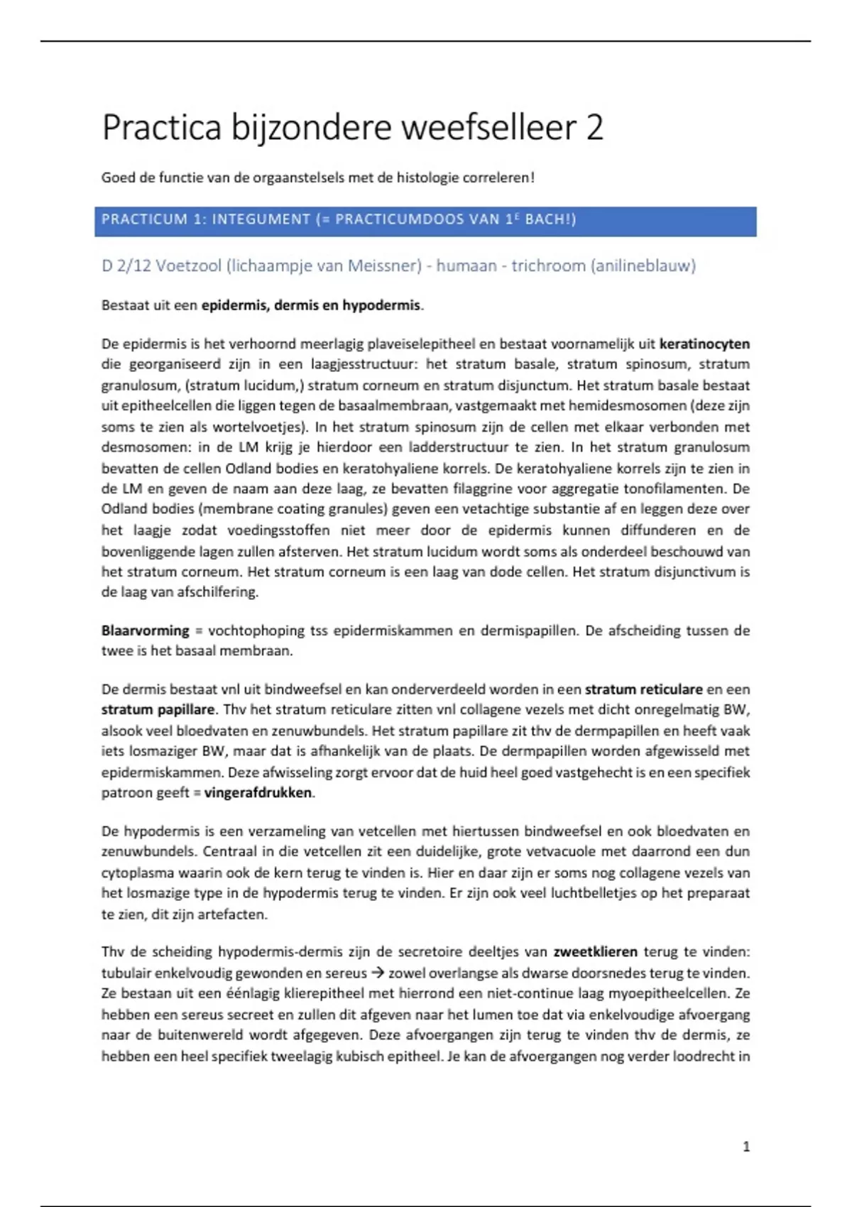 Samenvatting Volledige uitwerking van de practica bijzondere weefselleer - 18/20 mee gehaald