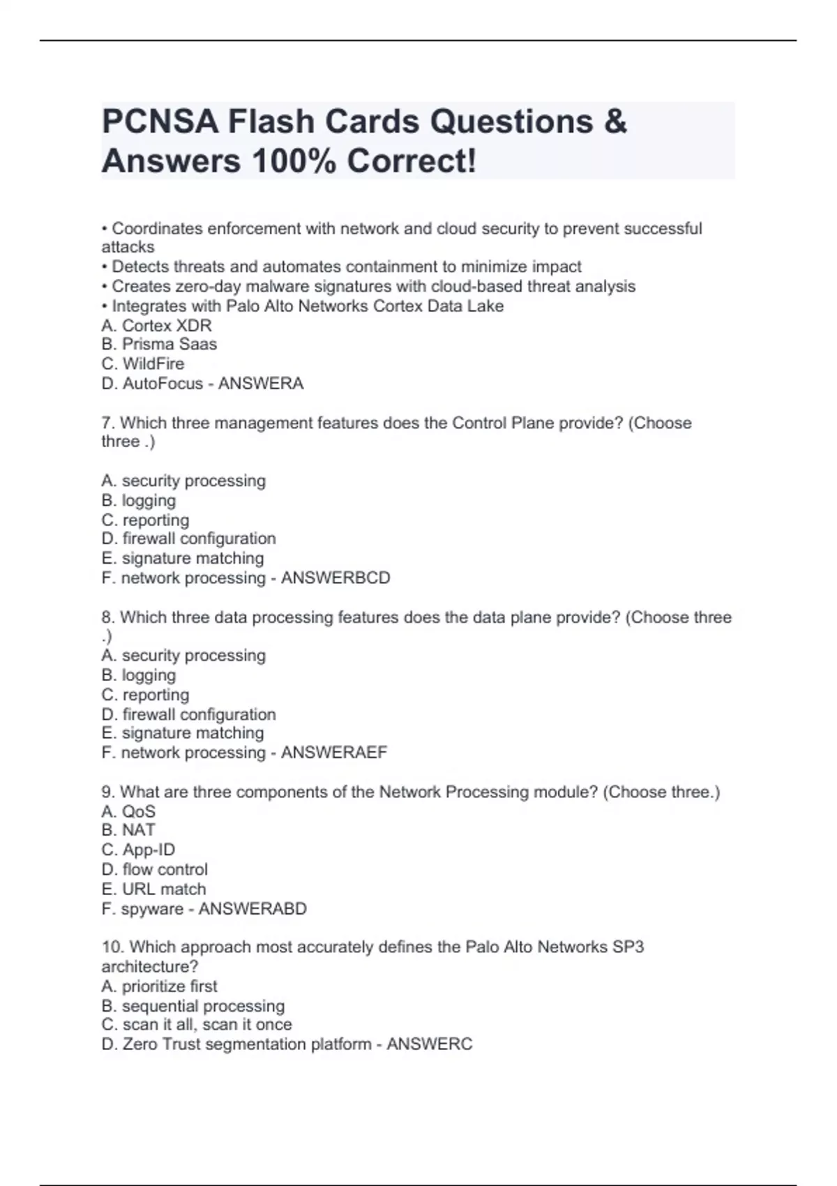 PCNSA Study Guide Questions & Answers 100% Correct!!