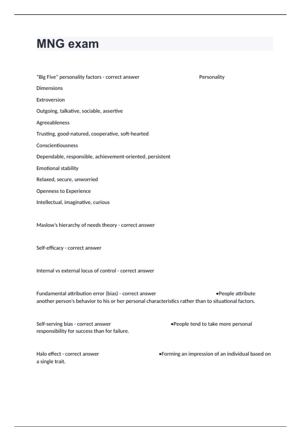1 Exam (elaborations) MNG 580 TEST 1 With Verified Correct And Complete Solution. 2 Exam (elaborations) MNG Seminar Exam Study With 100% Accurate Answers. 3 Exam (elaborations) MNG exam 3 Questions With All Complete And Verified Solutions Graded A+. 4 Exam (elaborations) MNG-210-82B Final Exam Study Guide With Questions And Answers Verified Guar