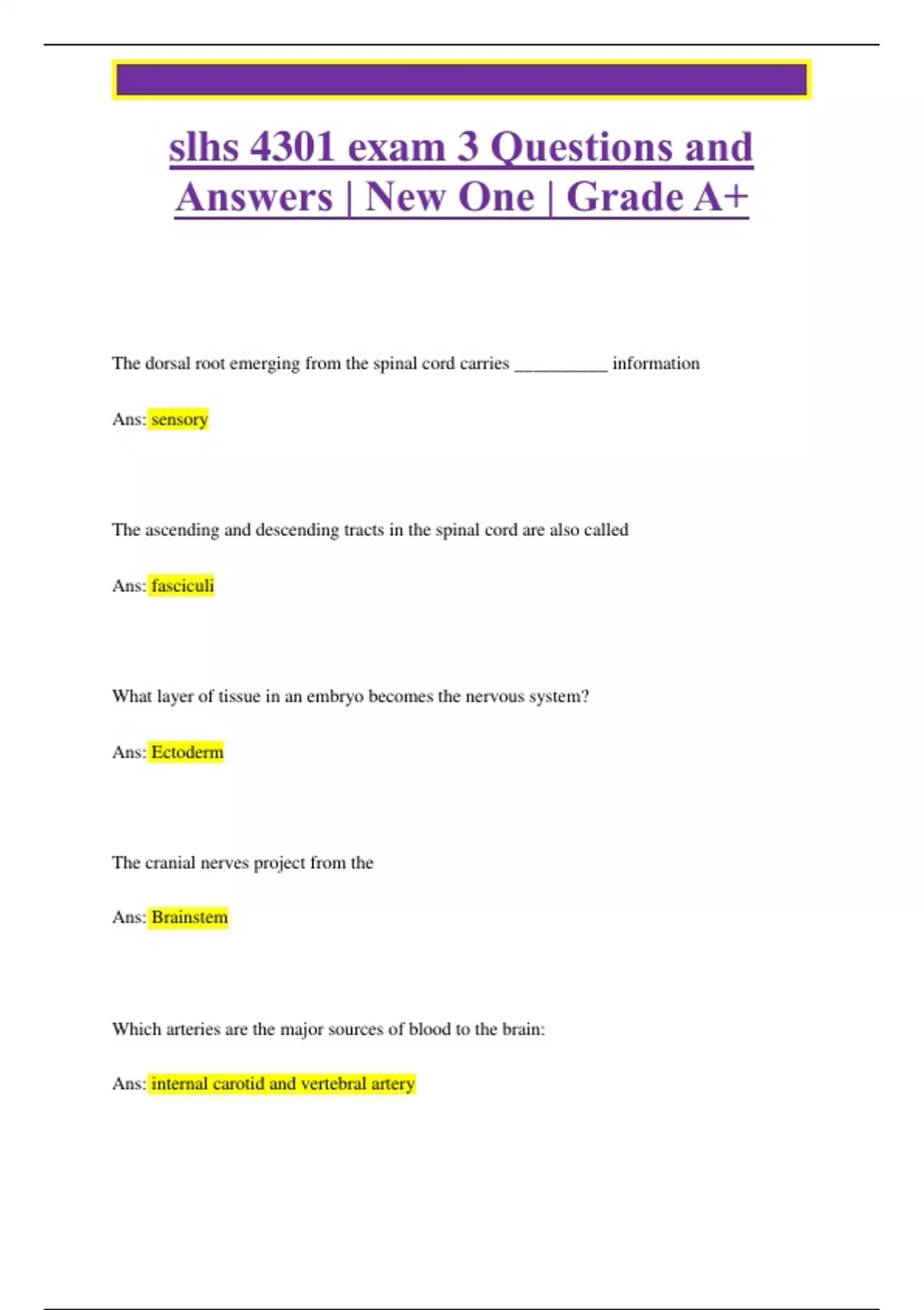 SLHS 4301 Exam Pack Questions and Answers | New One | Grade A+