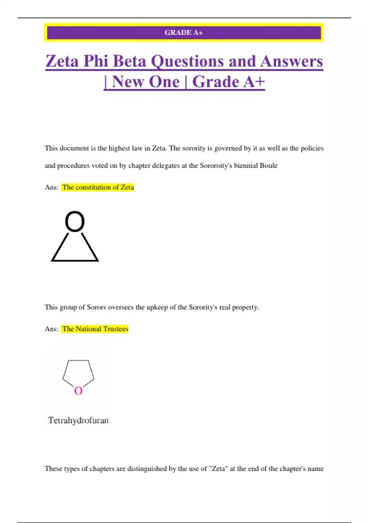 Zeta Phi Beta Questions and Answers Pack | New One | Grade A+