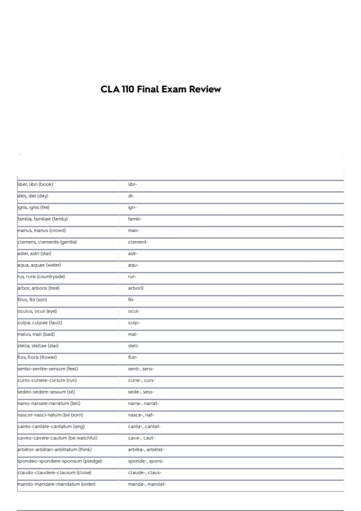 CLA 110 FINAL EXAM REVIEW