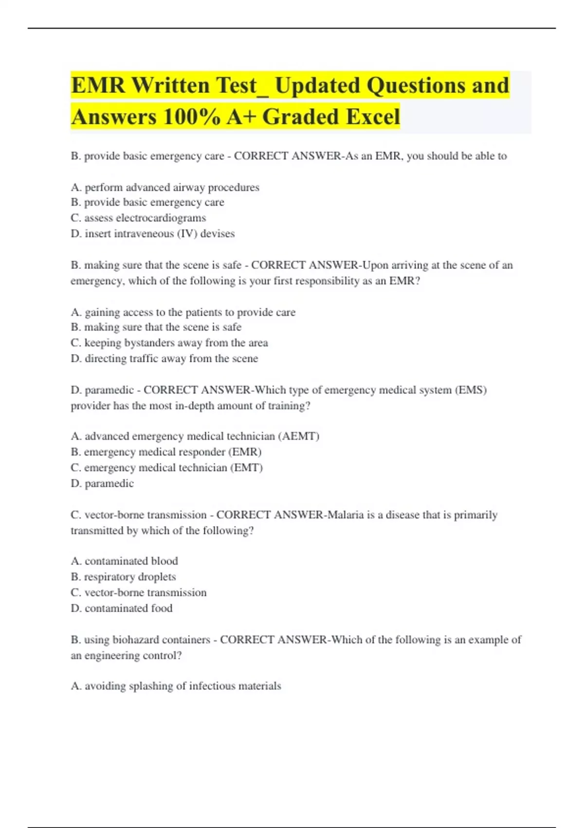 EMR Written Test_ Updated Questions and Answers 100% A+ Graded Excel_ Package Deal 100% Excel