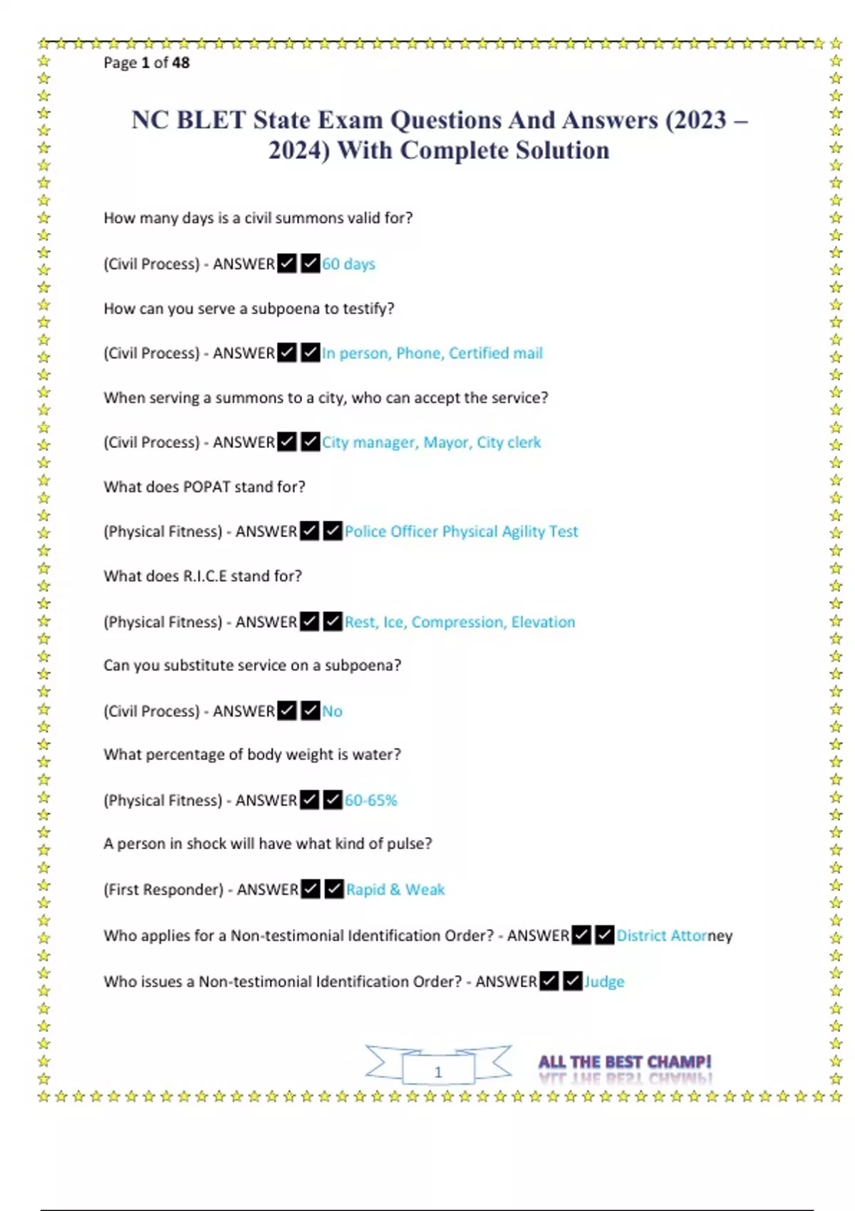 NC BLET STATE EXAM LATEST ACTUAL EXAMS