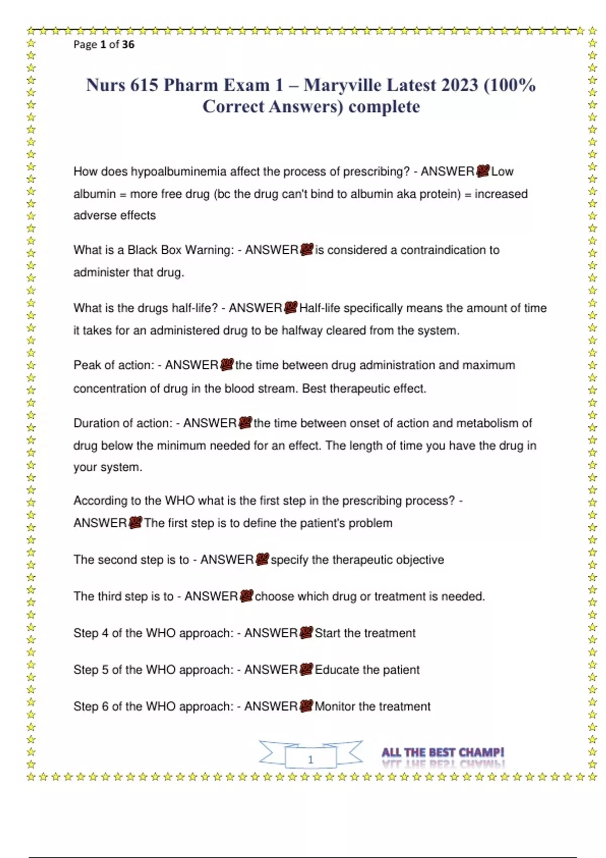NURS 615 PHARM EXAM 2 LATEST 2024 REAL EXAM QUESTIONS AND CORRECT ANSWERS COMPLETE EXAM AGRADE (MARYVILLE UNIVERSITY)
