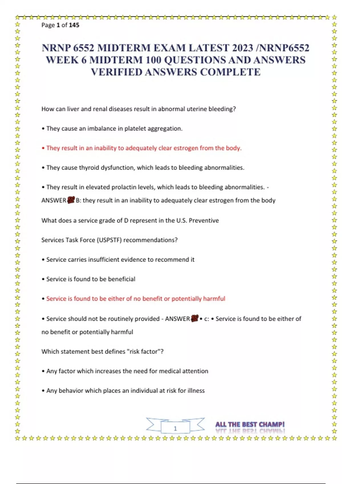 NRNP 6552 MIDTERM EXAM 2024 ACTUAL EXAM QUESTIONS AND CORRECT DETAILED ANSWERS (ALREADY GRADED A+)