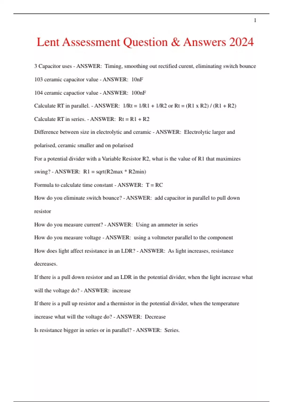 Physics 1- Radiographic Questions & Answers