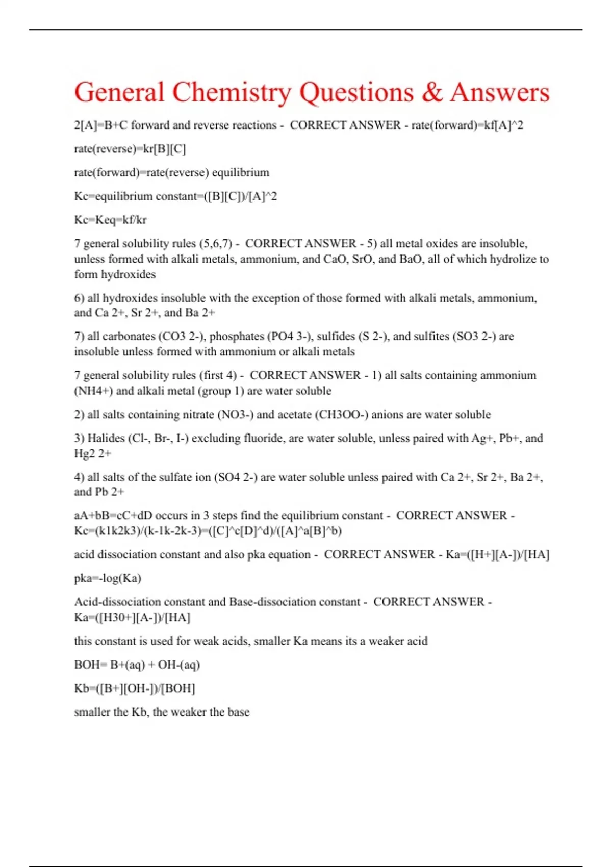 GENERAL CHEMISTRY I QUESTIONS & ANSWERS