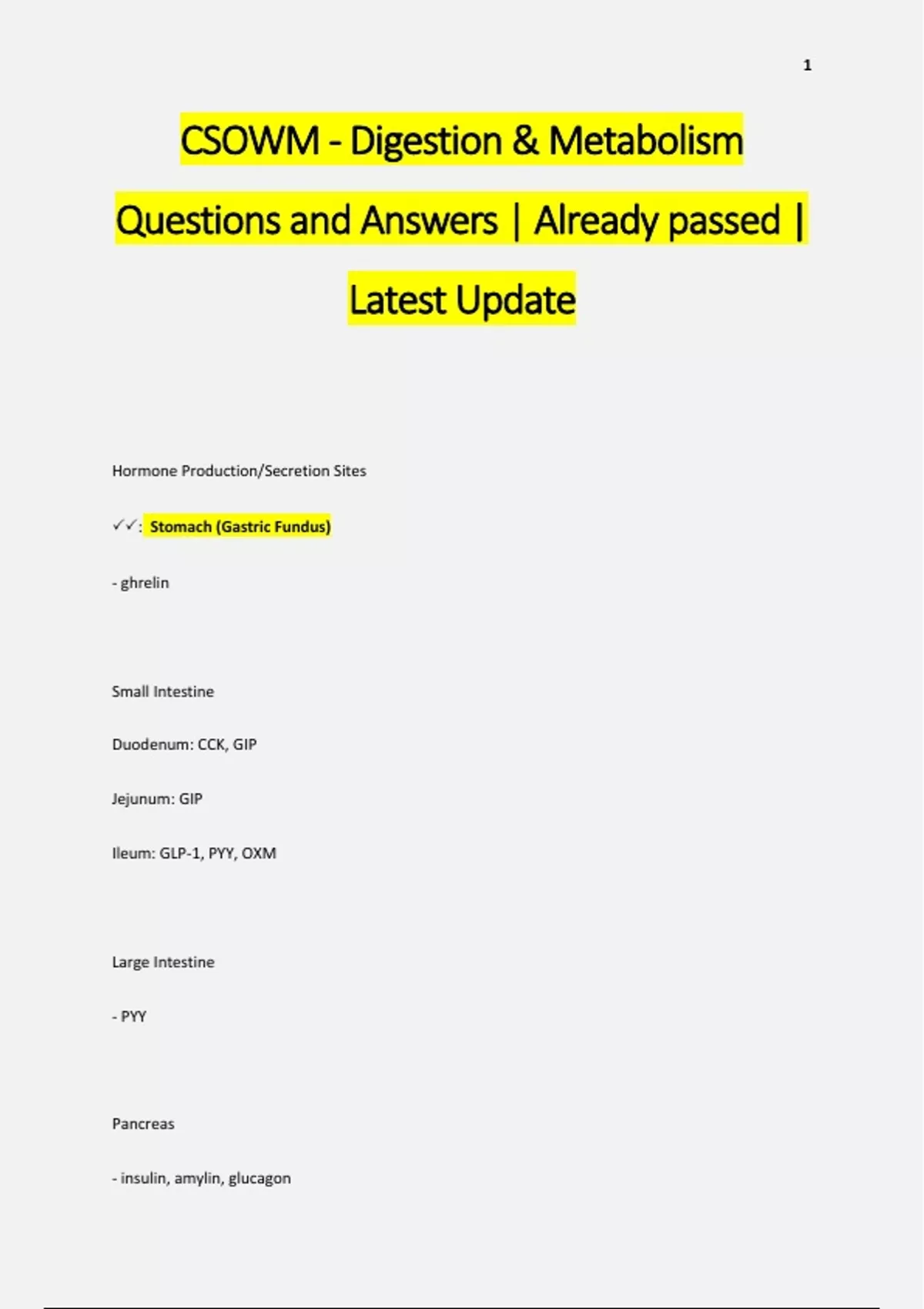 CSOWM Exam Complete Bundle – 14 Study Guides with Questions and Correct Answers (Modules 1–6, Digestion, Metabolism, Exercise, Pregnancy, Surgery & More | Passed Exam, 2025 Update) CSOWM exam bundle obesity and weight management CDR certification prep dig