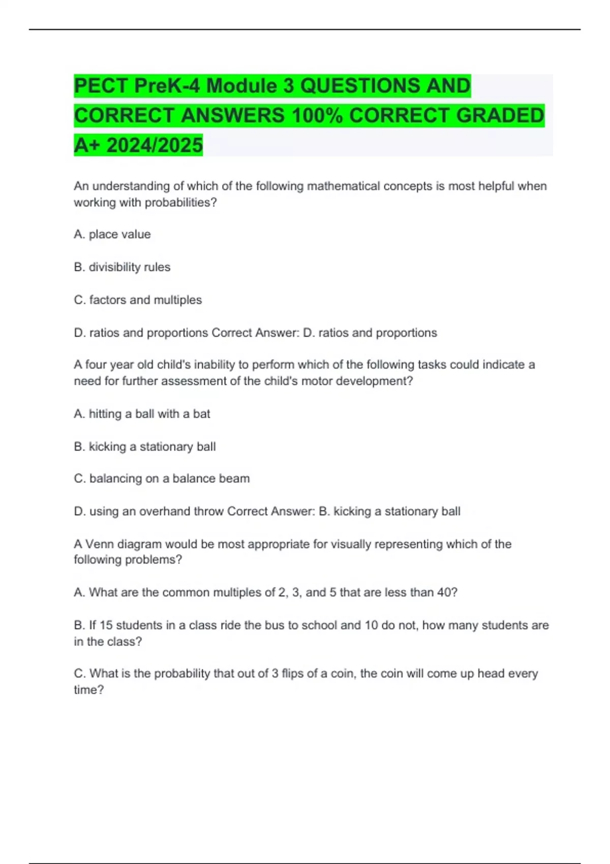 PECT PreK-4 Modules 3: Practice Questions and Exam Reviews with Correct Answers.