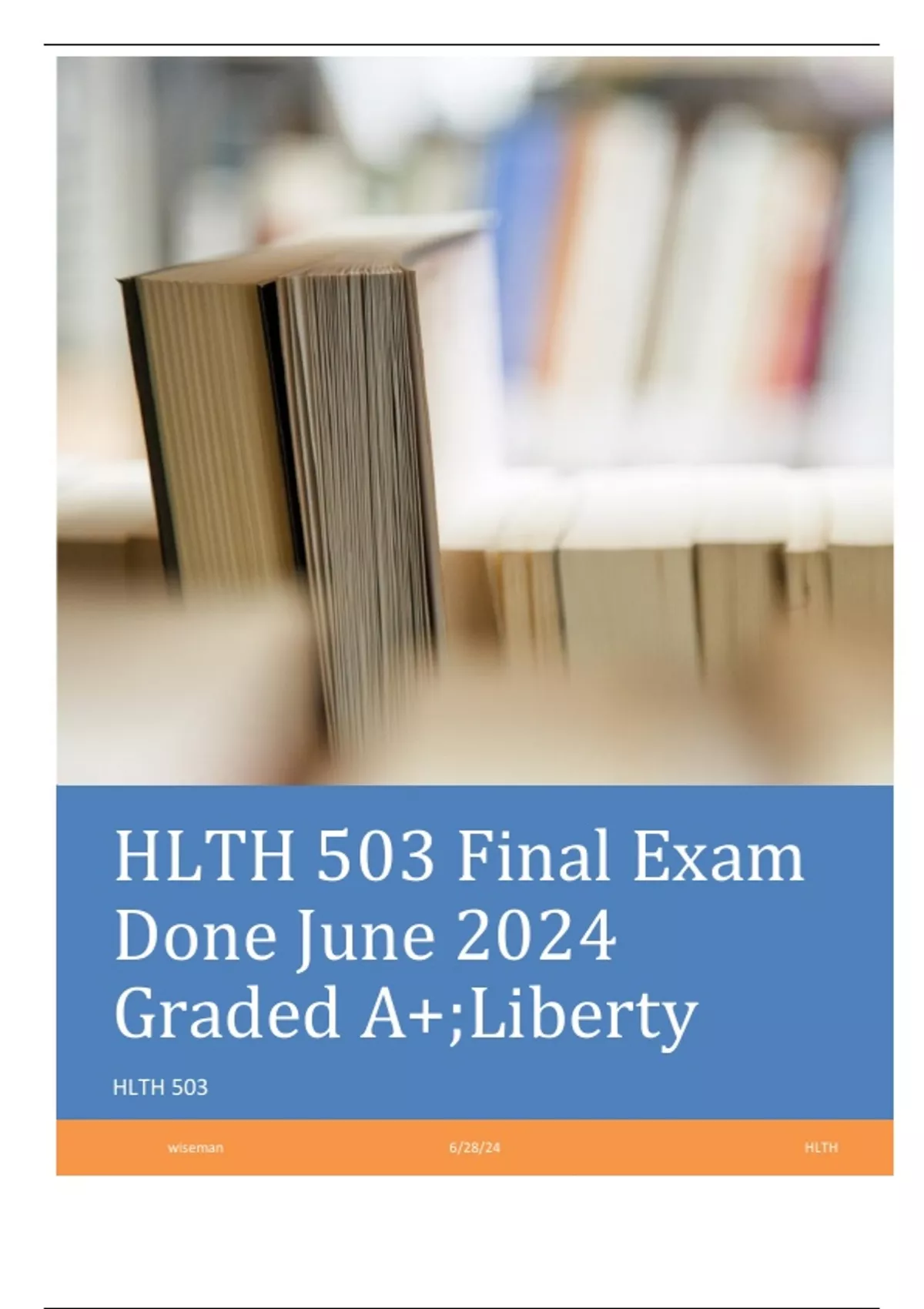 HLTH 503 Week 3 Quiz 2024: Data Sources with complete solutions-Liberty HLTH 503 WEEK 4 QUIZ 2024: EXPERIMENTAL STUDIES WITH COMPLETE SOLUTIONS-LIBERTY HLTH 503 Week 6 Quiz 2024: Screenings with complete solutions-Liberty HLTH 503 Week 5 Quiz 2024:Absolute and Relative Effects with complete solutions-Liberty HLTH 503 Final Exam Done June 2024 Grade