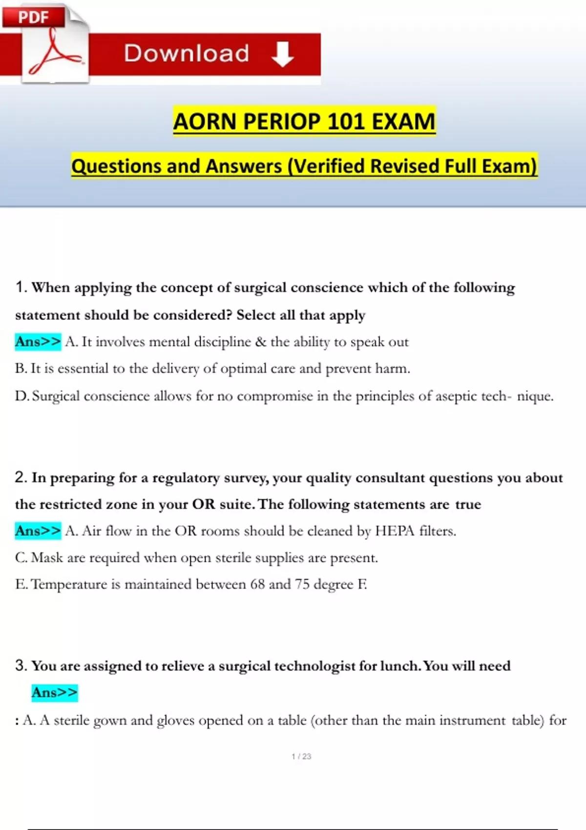 STUDY BUNDLE for AORN Periop 101 Final Exam (2024 / 2025) with 100% Guarantee Pass (COMPLETE PACKAGE)