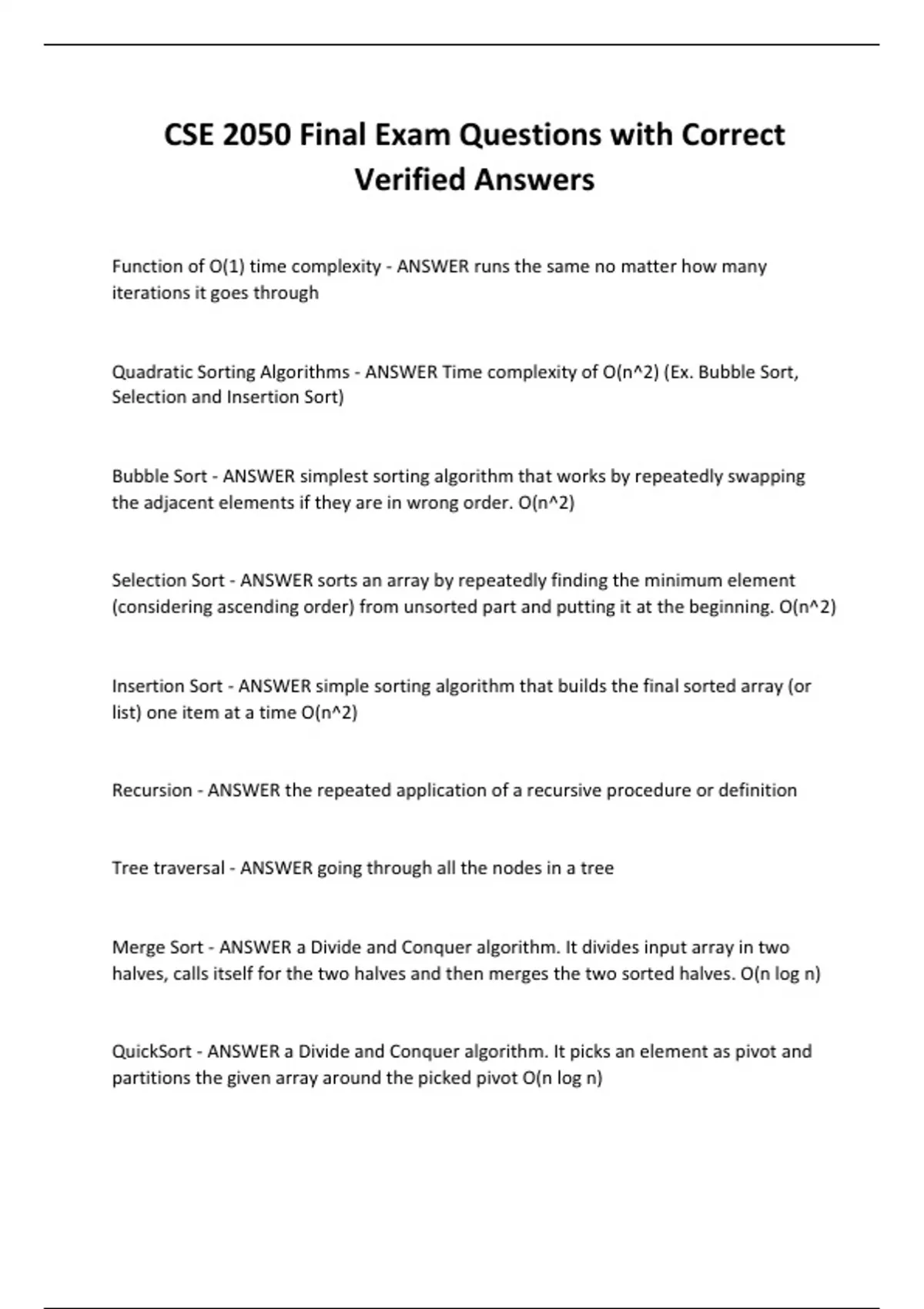 CSE 2050 Final Exam Questions with Correct Verified Answers