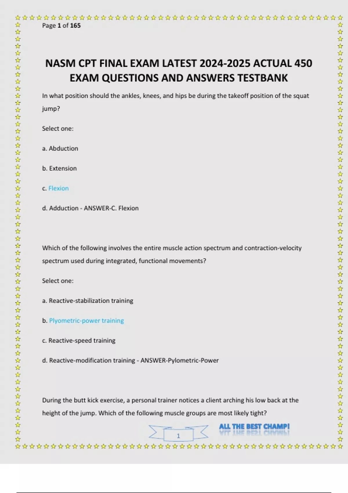 NASM CPT FINAL EXAM ACTUAL EXAM A, B & C LATEST QUESTIONS AND CORRECT ANSWERS ALREADY GRADED A+