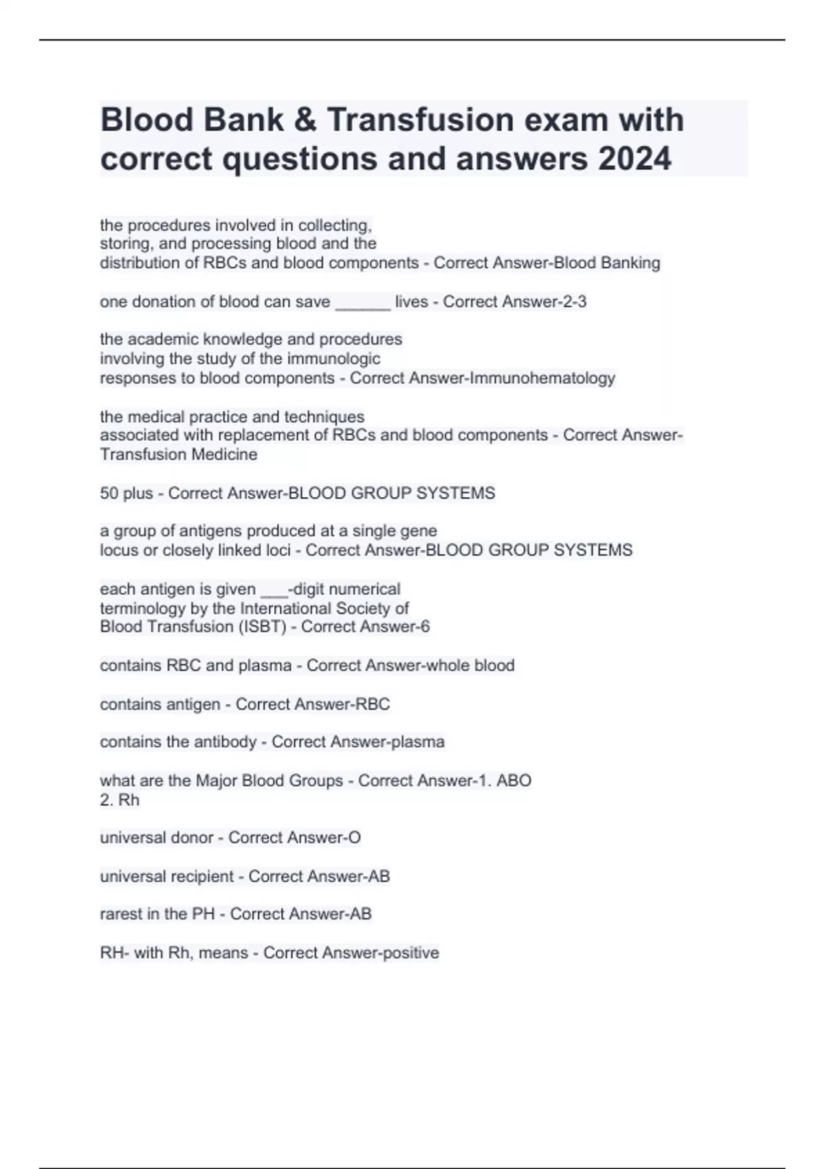 BMAT SECTION 3 CASE STUDIES EXAM WITH CORRECT ANSWERS 100% 2024 Blood Bank & Transfusion exam with correct questions and answers 2024 BIOS242 Final Chamberlain Exam With Correct Questions And Answers 2024 Bios 242 The Cell Concepts Week 1 Exam With Correct Questions And Answers 2024 BIOS 242 Lab Practical Exam With Correct Questions And Answers 202