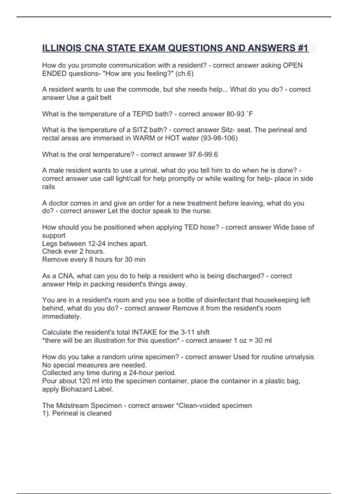 The nurse asks you to ambulate a patient BID during your shift. This means you will ambulate the patient ____ times. A. Four B. Three C. Two D. One - correct answer C. Two Sometimes the best response for a nursing assistant is to assure the resident you are listening. Which of these behaviors is the best way to exhibit good listening skills? A.