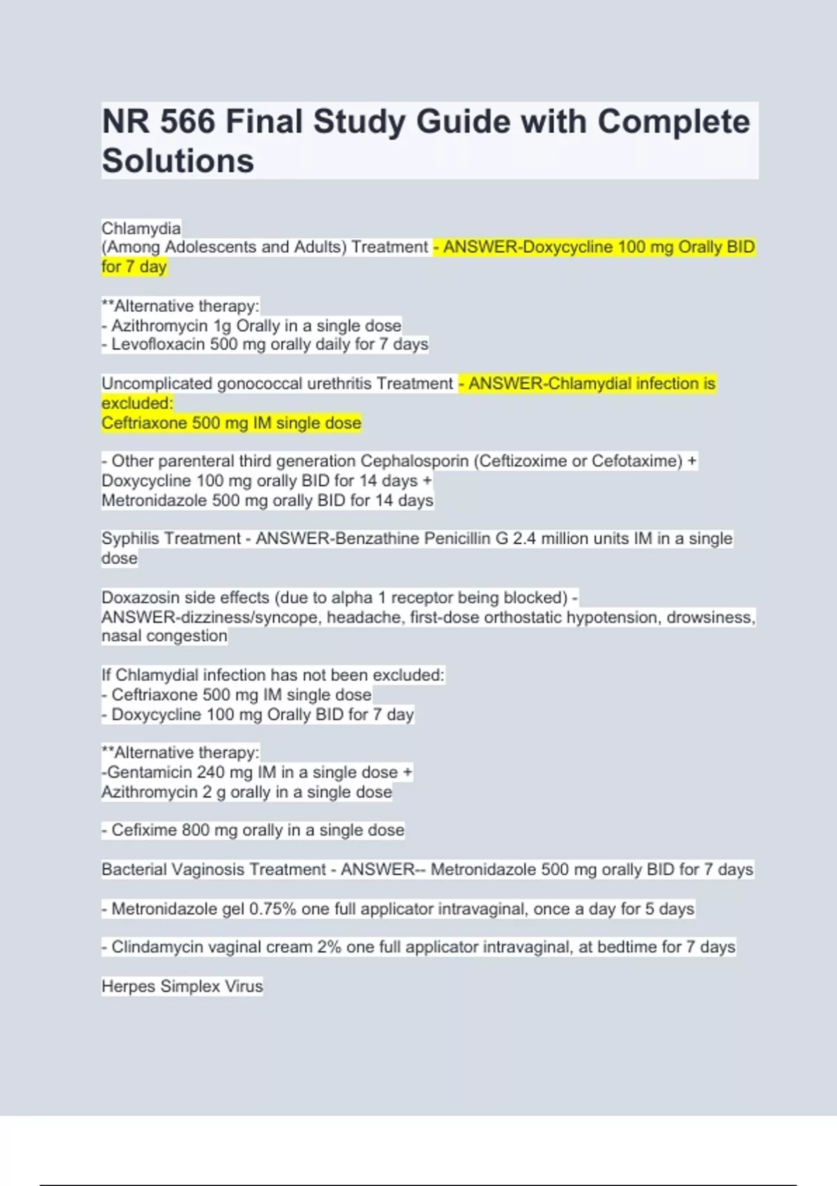 NR566 Final Exam Study Guide 2024 with Complete Solutions